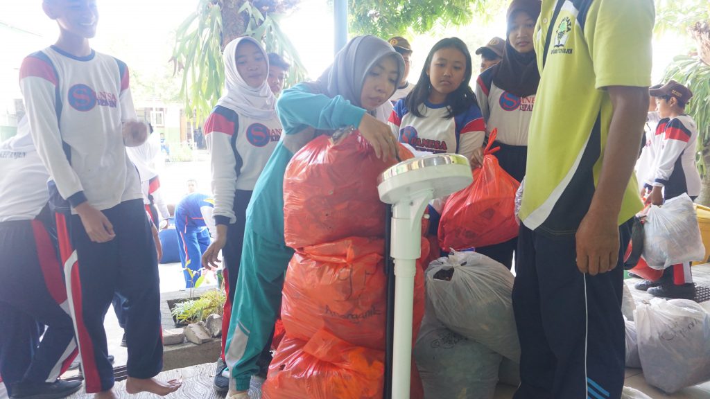 Setelah bersih-bersih selesai, tim dinas luar kemudian menimbangkan temuan sampah yang telah mereka pilah. Nah, sampah terbanyak dan benar pemilahannya inilah yang menjadi indikator kemenangan.