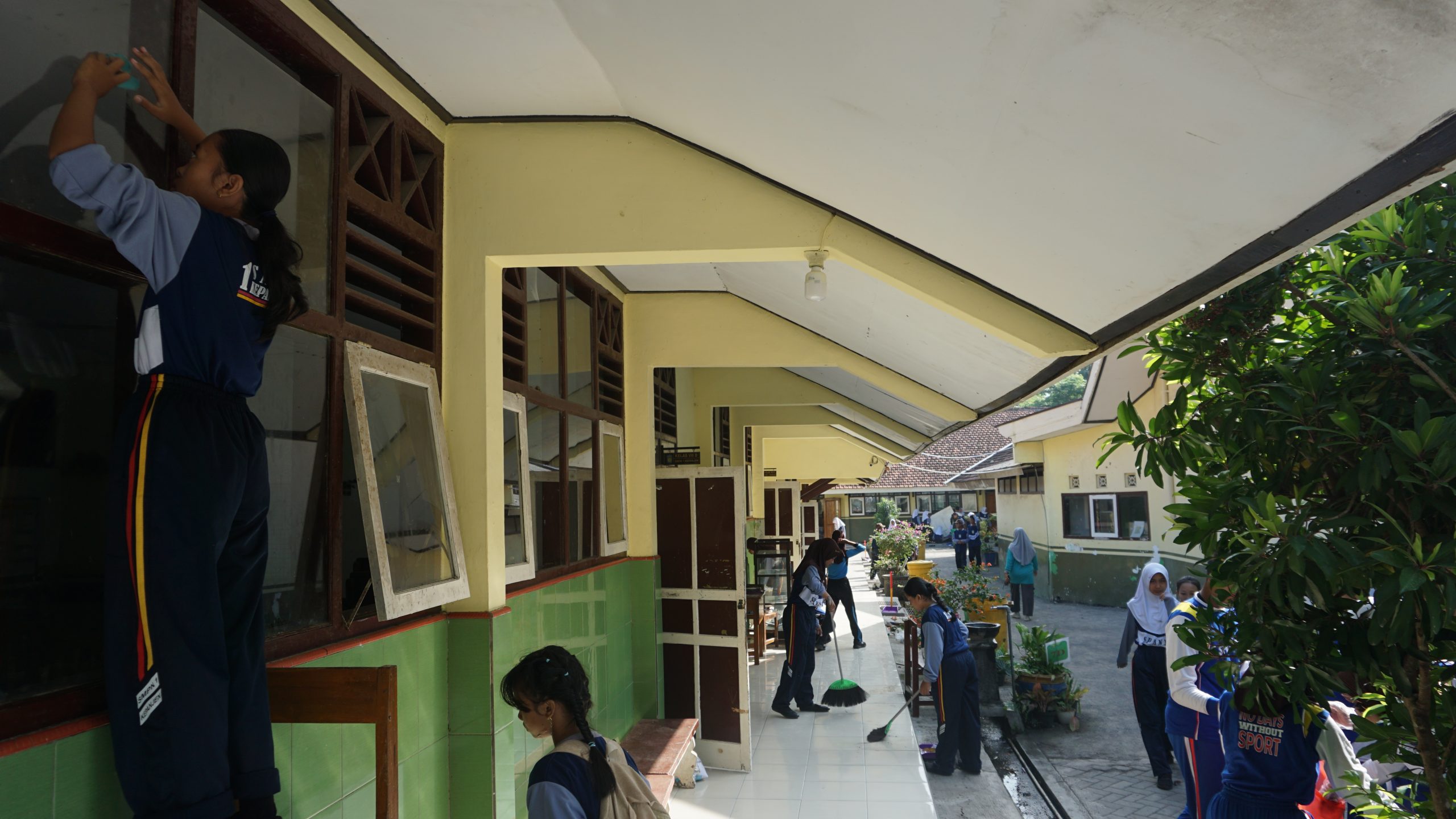 Kegiatan dimulai sejak pagi hari. Setiap kelas dibagi menjadi 3 tim, yakni tim kebersihan luar, tim kebersihan dalam, dan tim mading. Untuk tim kebersihan luar, kelas 7 mendapatkan area dari halaman depan hingga gapura Jalan Adiwacana. Kelas 8 mendapat area lapangan basket hingga depan KOPSIS, sementara kelas 9 mendapat area mulai dari greenhouse hingga lapangan belakang. Untuk tim kebersihan dalam, jobdesc mereka adalah membersihkan kelas masing-masing. Untuk tim mading sendiri, sesuai namanya mereka mendapatkan tugas untuk membuat mading adiwiyata di kelas mereka masing-masing.